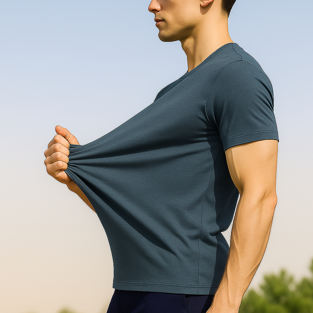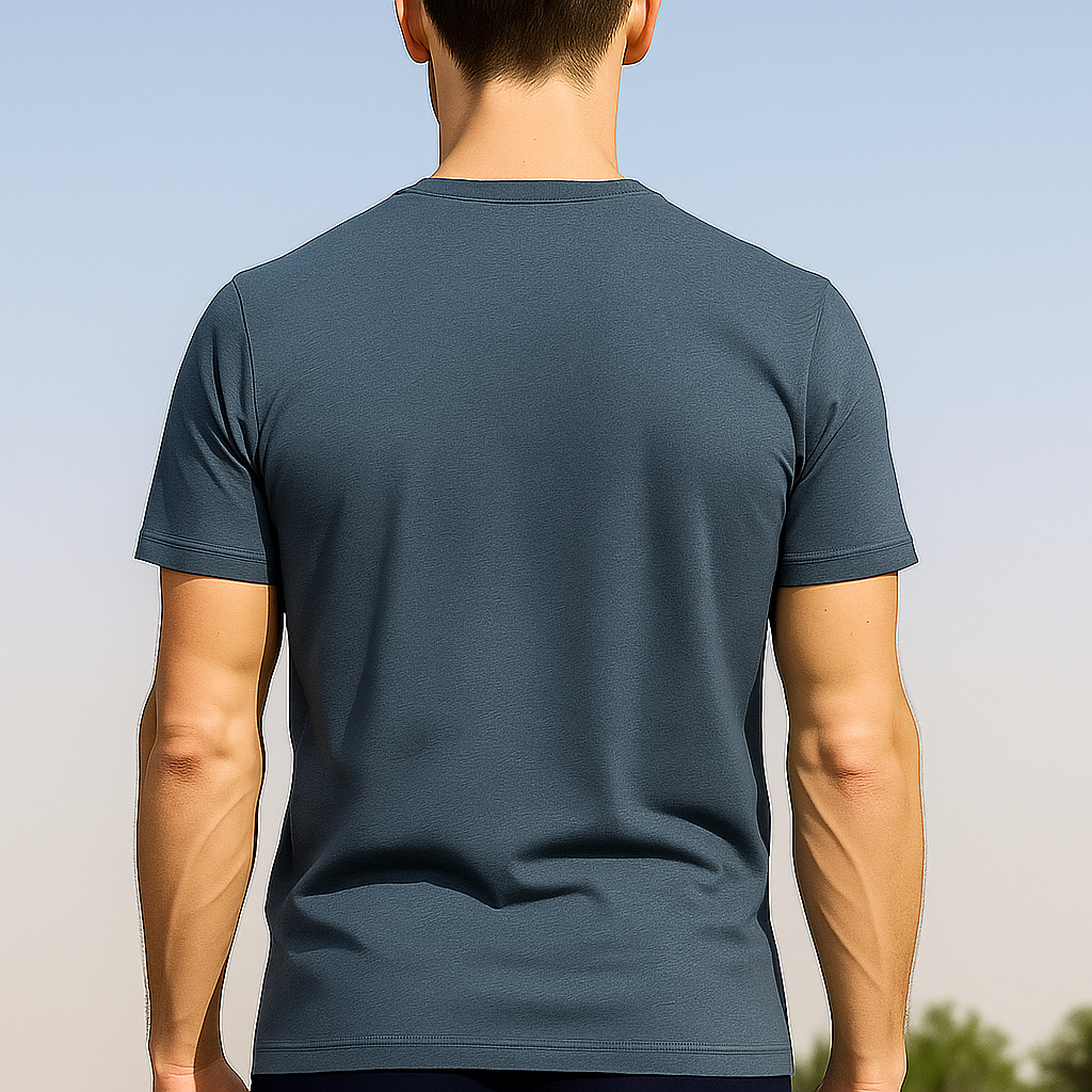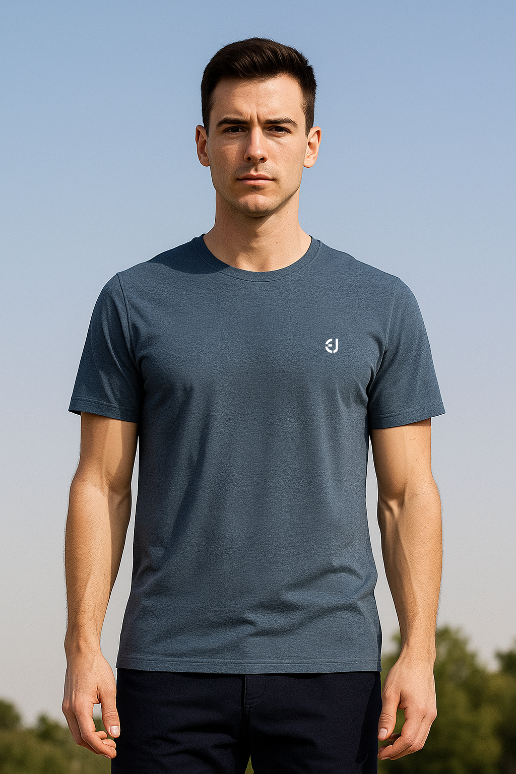 The CoreEase™ Everyday Crew Tee in Steel Blue is built for simplicity, comfort, and everyday performance. Made from an ultra-soft cotton-modal blend, it offers a lightweight, breathable feel with just the right amount of stretch. The tailored cut gives a clean silhouette, while the embroidered minimalist logo adds a premium touch.
